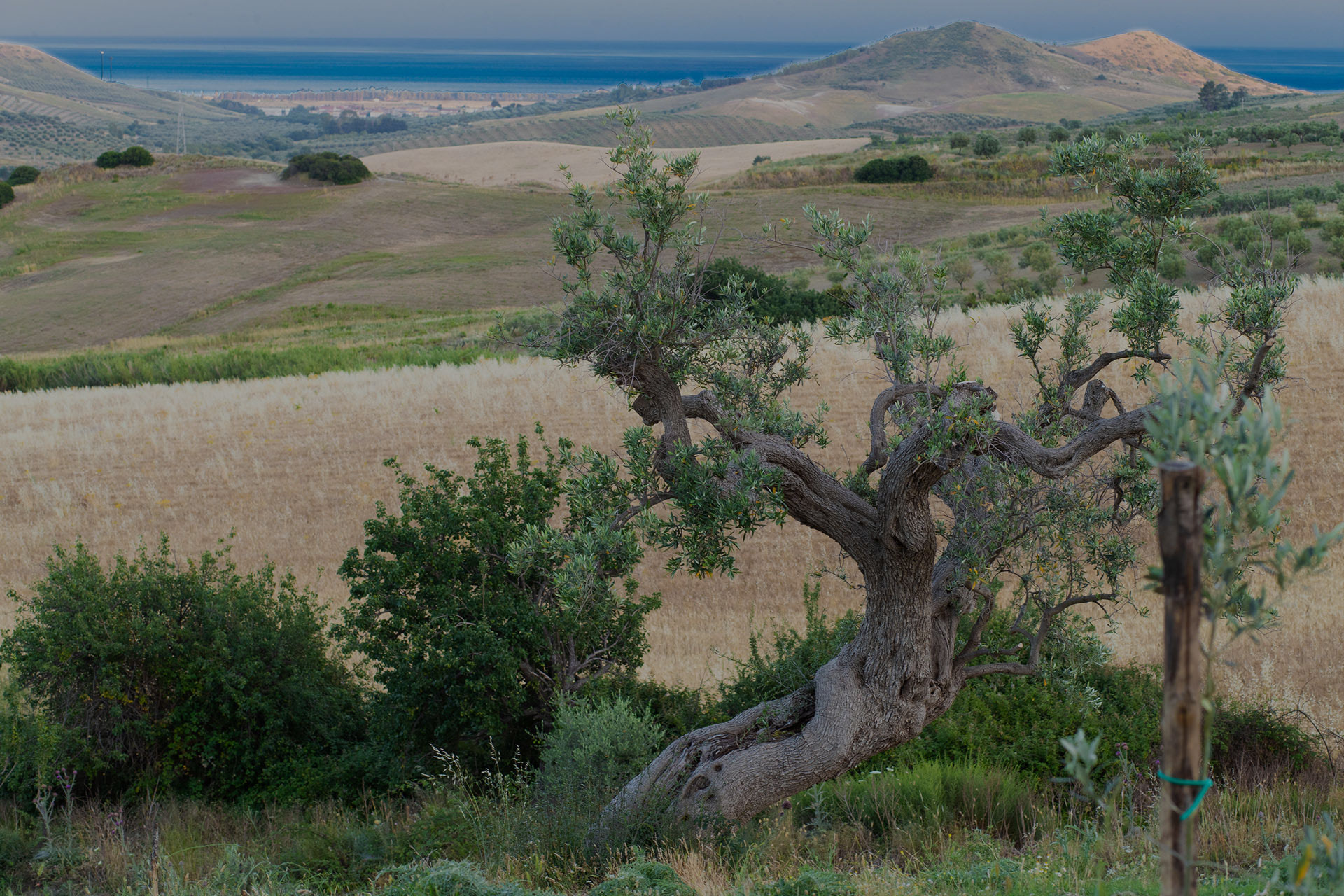 Le nostre terre sono quelle fertili delle colline dell’antica Magna Grecia. Ricche di elementi nutritivi e sane, queste terre accolgono i germogli e le estese coltivazioni di cereali (grano, orzo) e foraggi, così come le radici di grandi uliveti, alcuni secolari, ed anche le erbe spontanee della macchia mediterranea.TerraTerra AcquaAriaSole _________Un fiume e un ruscello attraversano la nostra azienda. Sulle sponde del Crocchio, che sgorga dalle montagne della Sila Piccola, si intravedono ancora, tra la vegetazione rigogliosa, i ruderi di vecchi mulini. I campi sono invece bagnati da piogge intense che, dopo le estati secche, si protraggono fino a primavera.AcquaTerra AcquaAriaSole ___________È un’aria sgombra dall’inquinamento industriale quella che spira sulle nostre terre. I venti costieri temperati e carichi d’umidità rimontano fino ai rilievi. Gli scambi d’energia tra le masse d’aria contribuiscono a creare il microclima della fascia ionica collinare che è particolarmente adatto alla coltivazione. AriaTerra AcquaAriaSole ________I nostri campi guardano il mare e sono esposti al sole costantemente. In sinergia con l’acqua e con la terra, questa fonte naturale di vita rende possibile, stagione dopo stagione, l’antico lavoro della semina e del raccolto che, in un’alleanza fedele con la terra, noi portiamo avanti da tre generazioni ormai.SoleTerra AcquaAriaSole _______